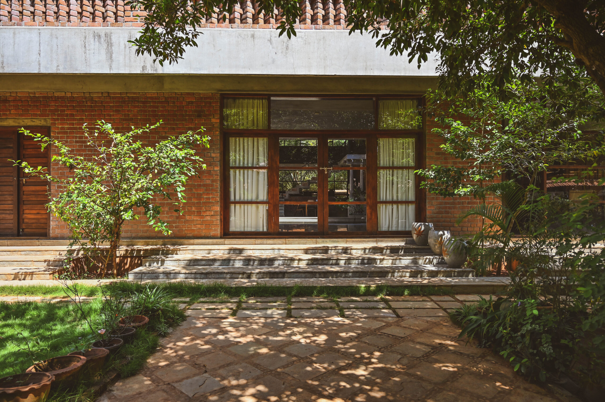 Kalarigram House is located on the outskirts of Auroville, within a site that houses a Kalari school of martial arts and a treatment centre. It was designed for the Kalari master, his family, and guests attending various treatments and workshops. The client’s requirements emphasized creating a versatile multifunctional space that integrates rich traditional elements and local vernacular with modern living standards.